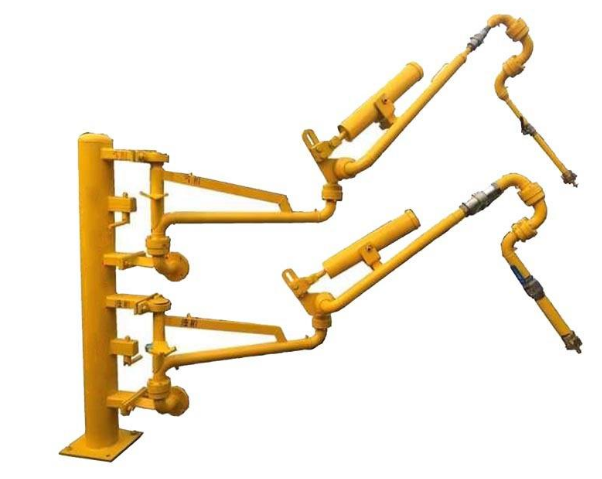 汽車鶴管是采用旋轉接頭與剛性管道及彎頭連接起來,以實現在汽車槽車與棧橋上儲運管線之間傳輸液體介質的活動設備,以取代老式的軟管連接,具有很高的安全性,靈活性及長壽命等特點。